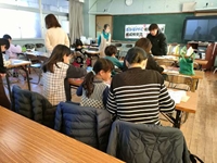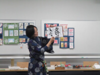 参加者は東和中学校が11月22日(火)に2年生29名、情島中学校(PFCグループ結成校)が11月24日(木)に全学年11名で、それぞれ英語授業の一環として、クリスマスカードや封筒の書き方を学びました。