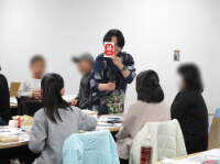 ワークショップを開催することとなった経緯は、「Rakuenマルシェ」主催者でJPPFCアドバイザーでもある社員から「イベント内でワークショップを開催してみないか。」との提案があり、開催することとなりました。参加していただいたJPPFCアドバイザーの中には、前日の研修で資格を取得したばかりの社員もいましたが、自身も楽しみながら講師を務めていました。