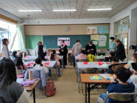 2024年3月7日(木)、石川県かほく市立大海小学校において「手紙教室」が開催されました。当日は1・2年生の児童11名が参加し、山﨑順子PFCアドバイザーの丁寧な授業のもと、約1時間をかけて手紙を書く楽しさを学びました。